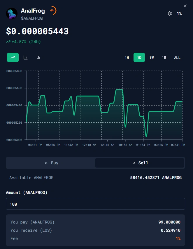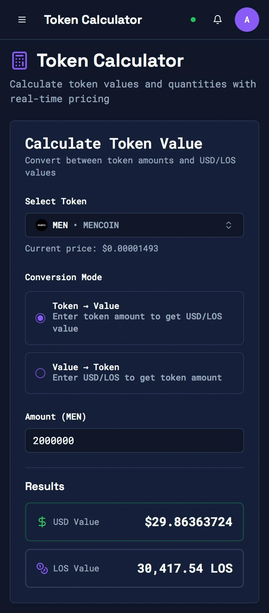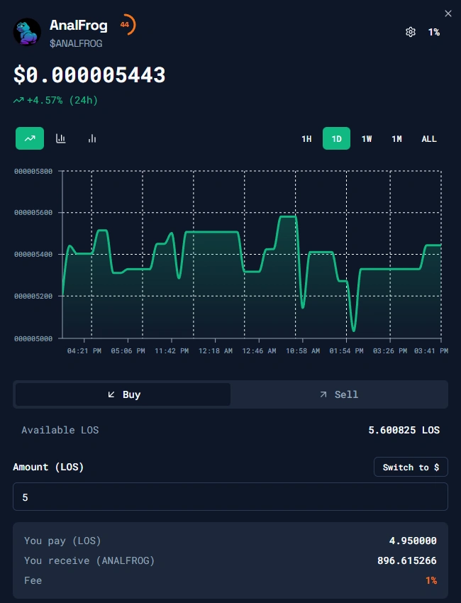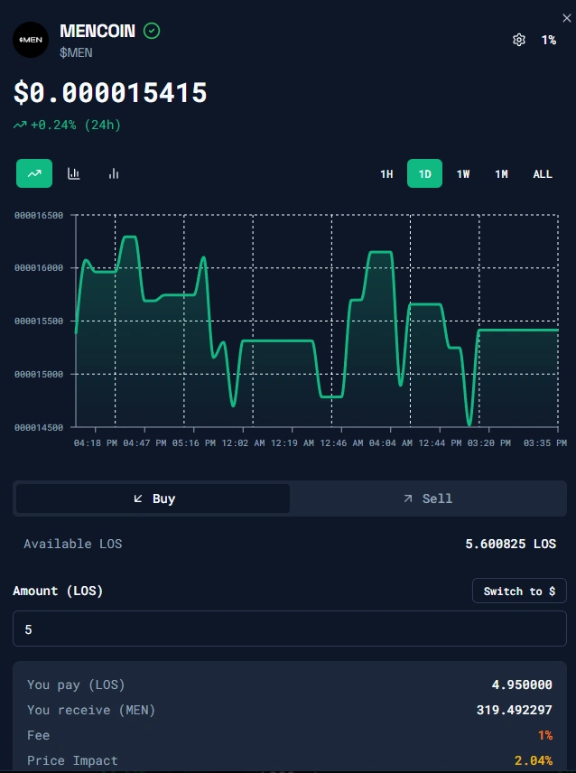 Quickly view current price of a token, and trade against $LOS. With quick quote features and buy/sell facility in app. Stunning chart visuals to view token progress over time or track progress. A small transaction fee of 1% helps support development of this DApp.