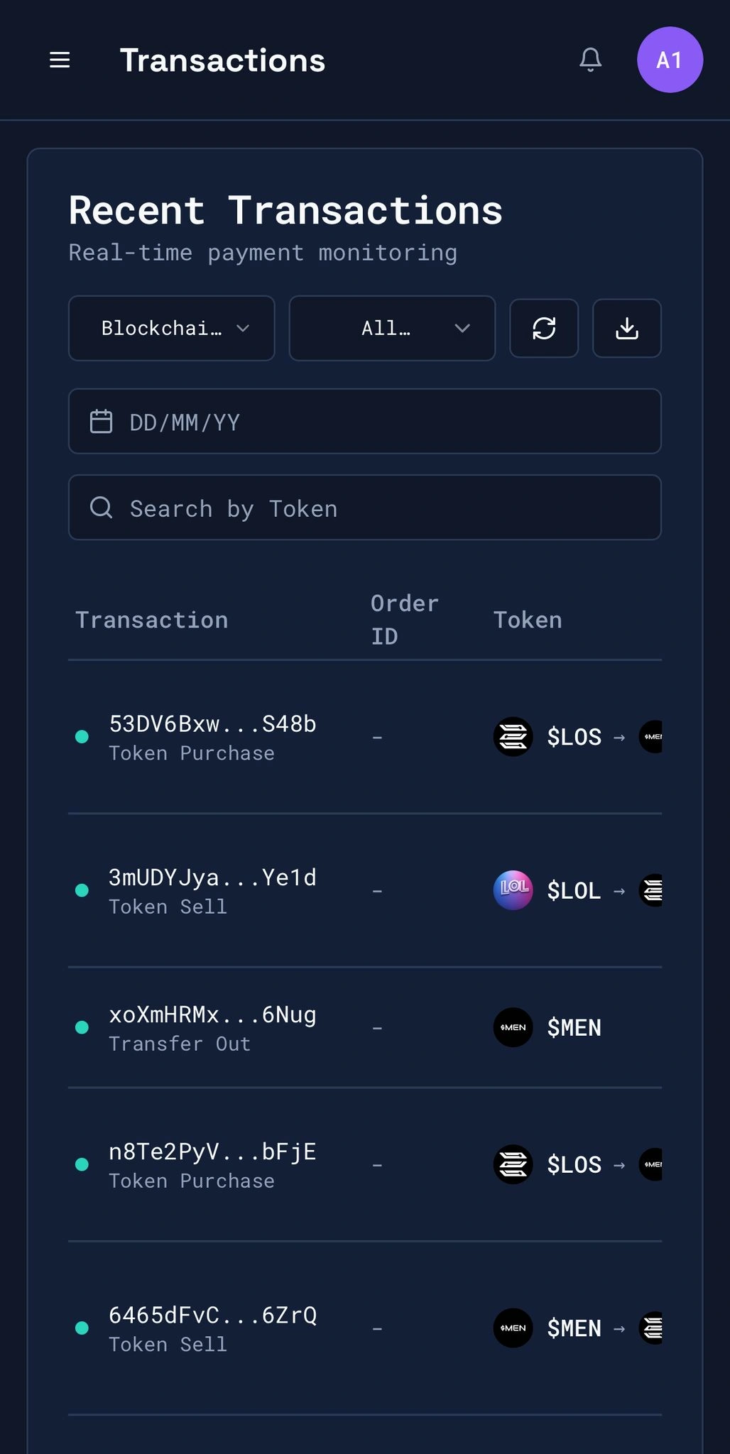 View your transactions at a glance and filter both Merchant and Blockchain. The app allows you to view Blockchain transactions in greater detail with links to explorer and you have the ability to export to CSV/JSON.